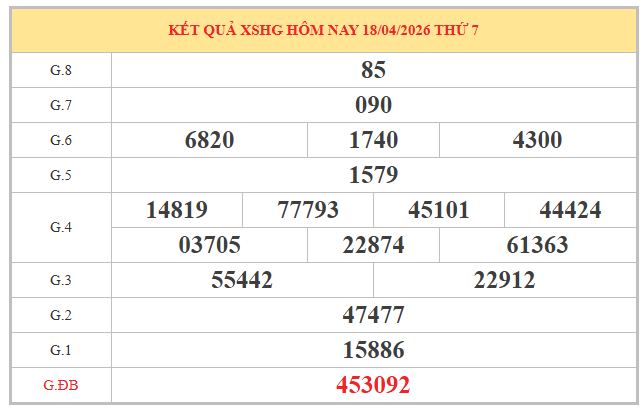 Tiếp theo là thống kê cầu Pascale XSHG cho kỳ quay ngày 25/04/2026. Dựa trên kết quả ngày 18/04, giải đặc biệt là 453092, giải nhất là 15886, ta ghép dãy số và tính được như sau: